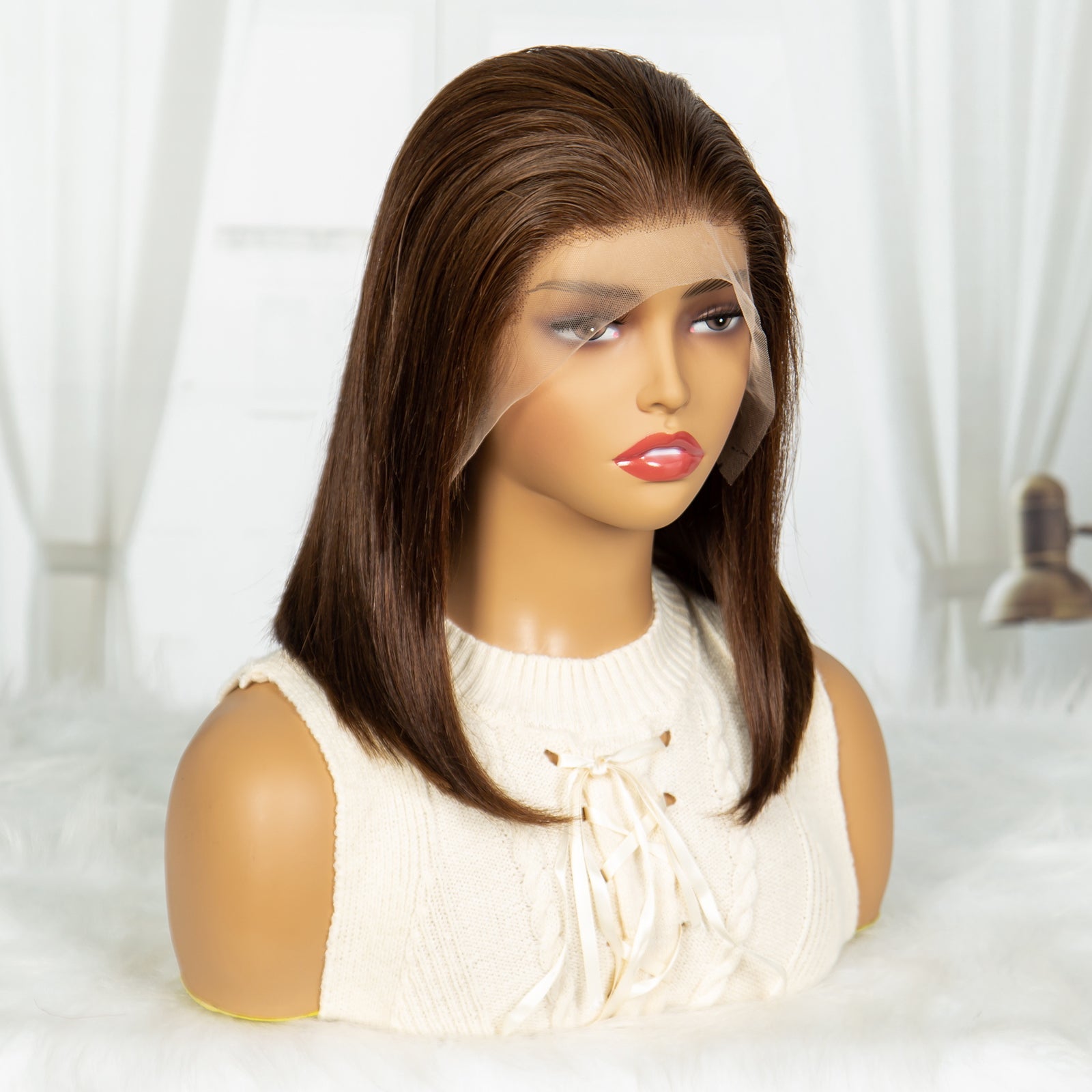 S SEDITTYHAIR 16" Human Hair Wig 13*4 Lace Front Bob Straight 200% Density